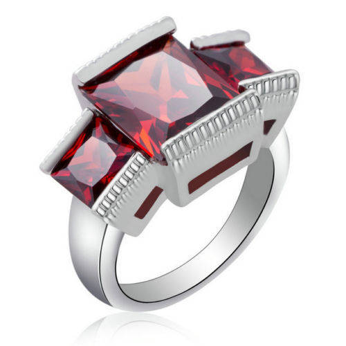 Jewellry Ring Size 8 Ruby CZ Lady's 10K White Gold Filled Gift