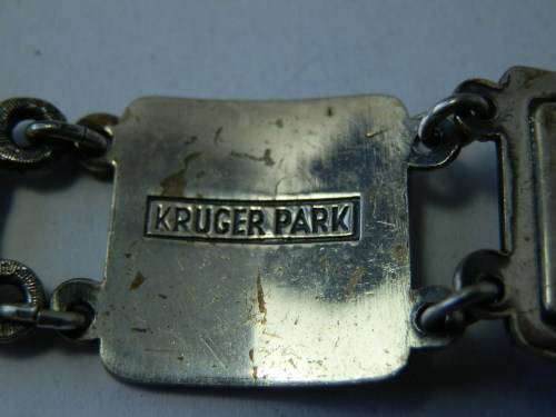 Very nice silver tone bracelet, marked KRUGER PARK, length 19 cm, width 2 cm and in good condition.