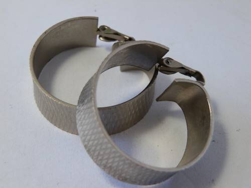 Silver metal hoop clip-on earrings from early 1970's, in good condition. The size is 3.5 cm diameter and the width 1.2 cm.