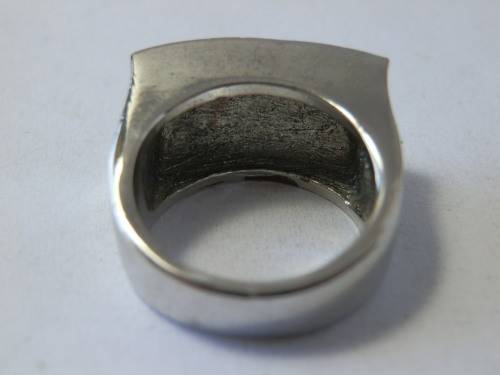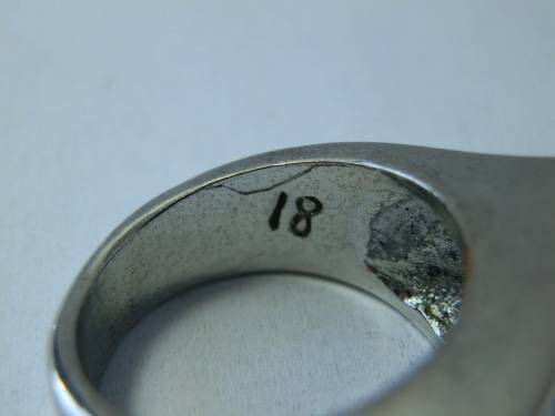 Heavy (17.6g) silver metal/tone ring, marked "18", size o / 7.5 and in good condition.