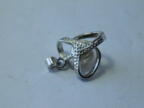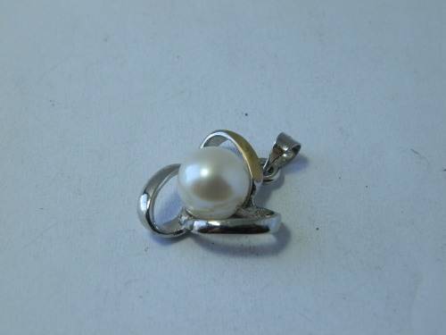 Silver plated real pearl pendant, size 1.8 x 2 cm (without loop), size of the pearl 9 mm diameter and in fair condition, some wear on plating.