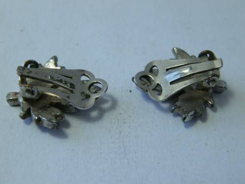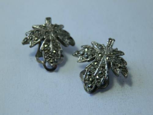 Silver metal marcasite clip-on earrings from early 1950's, size 1.6 x 1.6 cm and in good condition for age. They are stamped BJL.