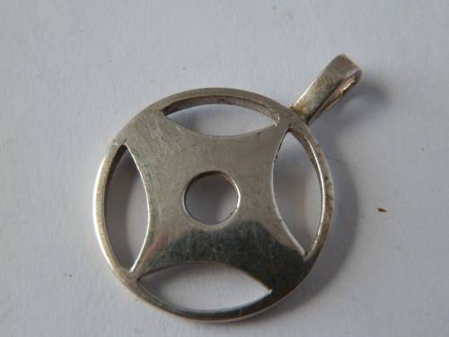 Sterling silver pendant, not marked but tests positive for sterling silver. The size is 1.6 x 2.1 cm.