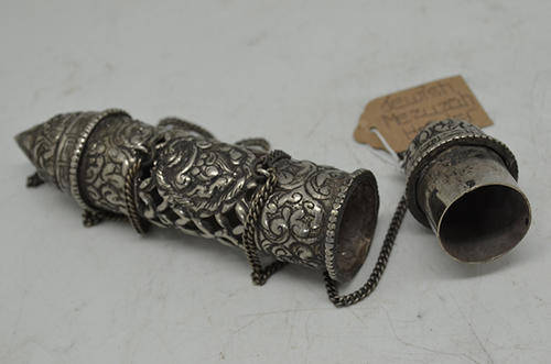 A Mezuzah is affixed to the door frame in Jewish homes to fulfill the Mitzvah to inscribe the words of the Shema "on the doorposts of your house"