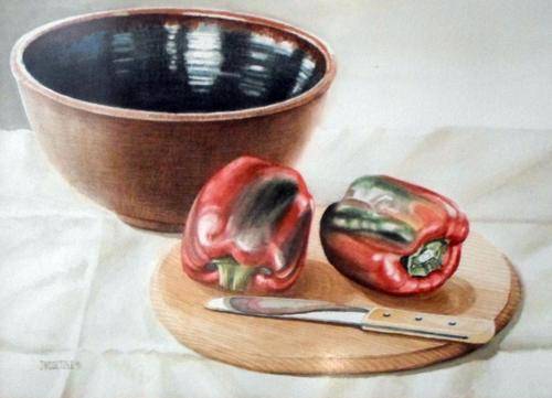 JH Coetzee - Still life - Bowl and peppers- A beautiful painting!! Bid now!!