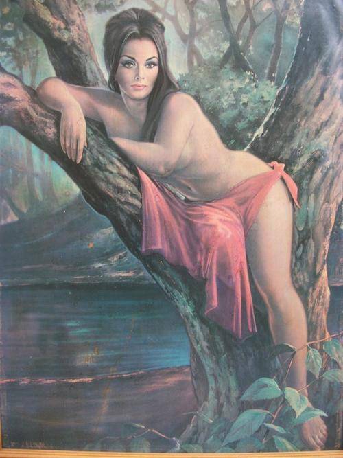 From the Internet (Wikipedia) : Joseph Henry Lynch (28 October 1911 – 16 January 1989) was a British artist, better known under his signature J.H. Lynch. His mass reproduced paintings of sultry women, especially Tina (1964) make him one of the protagonists of Mass Market Art. Nymph, Autumn Leaves and Woodland Goddess are some of his best known works, some of which are shown in the movie A Clockwork Orange by Stanley Kubrick and also on the cover of one of Edwyn Collins' singles.