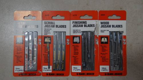 Includes jigsaw blades – see photo below (3 x metal jigsaw blades, 4 x scroll jigsaw blades, 2 x finishing jigsaw blades, 3 x wood jigsaw blades)