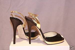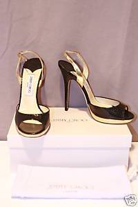 JIMMY CHOO BLACK & GOLD ELAZER SHOES (NEW IN BOX) CRAZY R1 AUCTION NO RESERVE