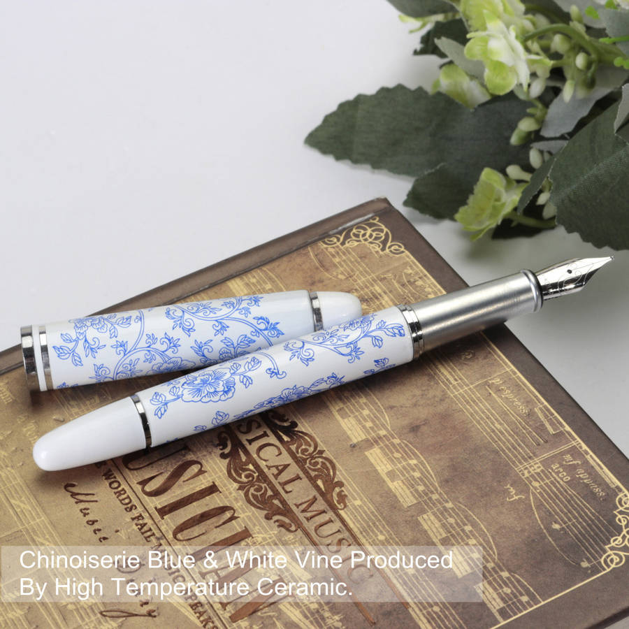 JINHAO 1 Piece Chinese Blue and White Porcelain Pattern Medium Nib Fountain Pen