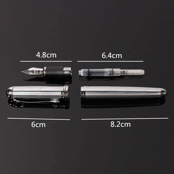Specification: Color: Sliver Material: Metal Fountain Pen's Tip Material: Other Metals Pen: Iron grey barrel,silver clip and trim Cap Type: Snap on type cap Converter: Removable ink converter ( may be replaced with international standard size ink cartridge.Also,you may use bottled ink.) Length: 14 cm approx. Diameter: about 14mm
