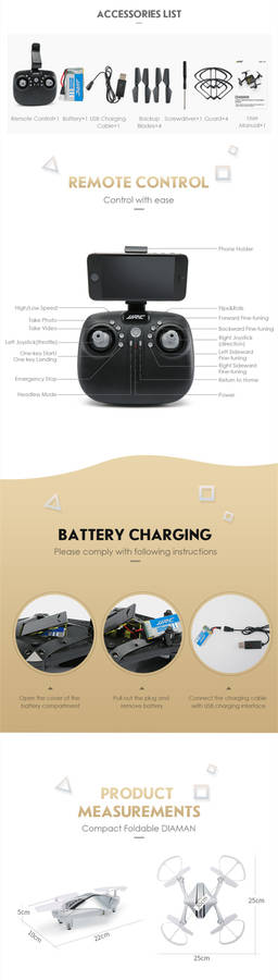 JJRC H44WH DIAMAN 720P WIFI FPV Foldable Selfie Drone With Altitude Hold Mode RC Quadcopter RTF