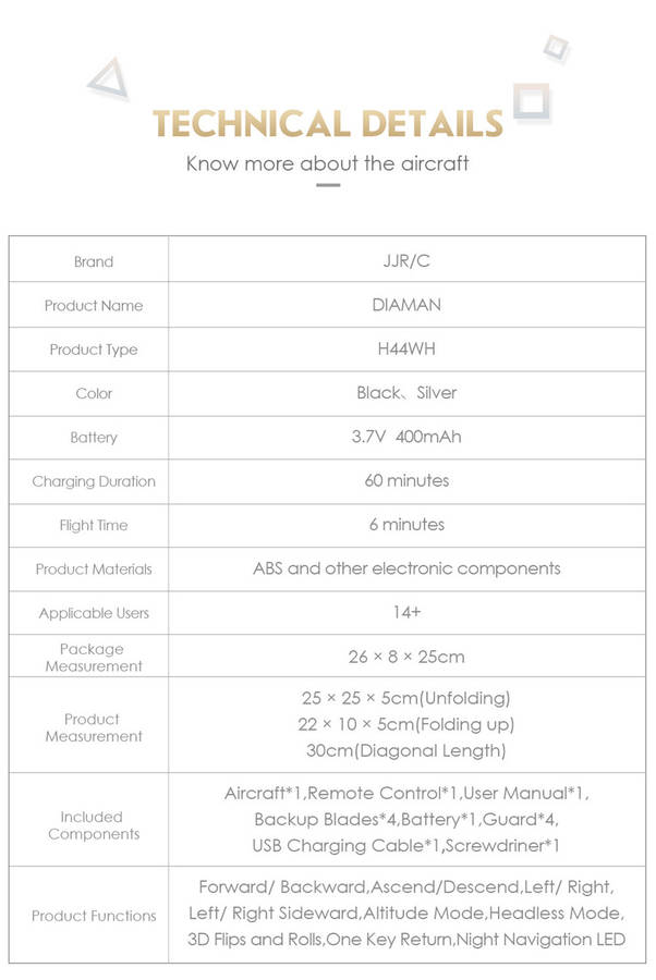 * It has 6-axis gyro which can have more stable flying and be easy to control.