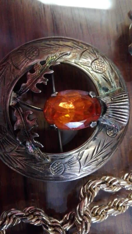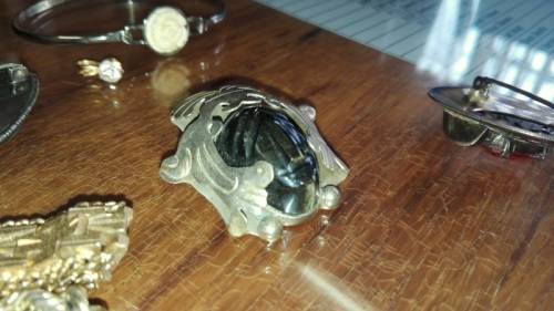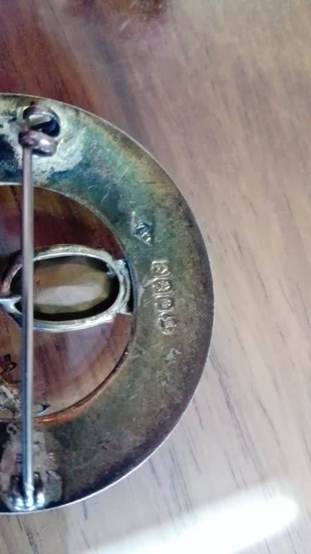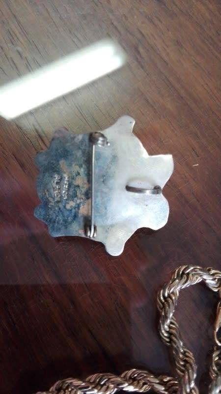 THE SILVER "MASK BROOCH" IS MARKED ALPACA, MEXICO AND THE STONE LOOKS LIKE AN AGATE- THIS IS AWESOME!!! (I CANNOT PHOTOGRAPH THE HIDDEN BEAUTY IN THE STONE ITSELF)
