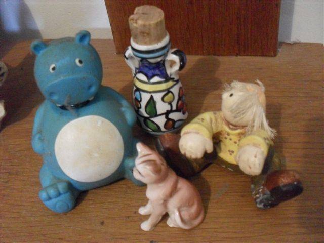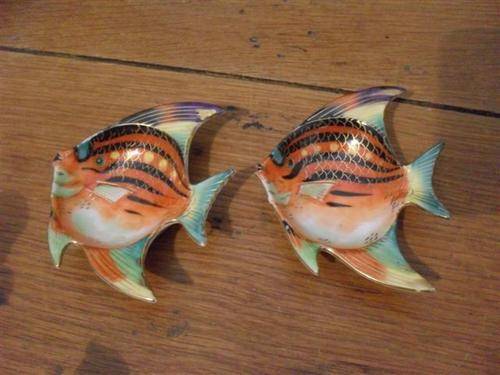 FISH SHAPED HAND PAINTED PIN TRAYS...CHERUB ...3 MONKEYS....OLD MONEYBOX...ETC ETC ETC