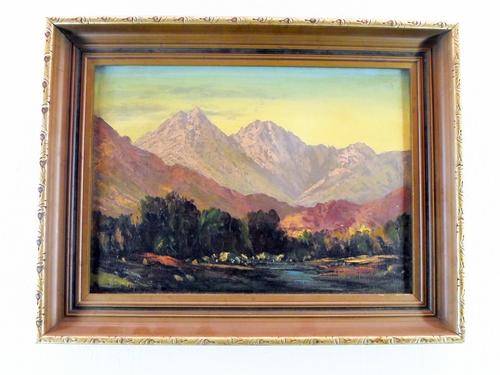 A stunning painting!! The colors and composition is truly magnificent! Painted on canvas and is very old. This beauty measures 34cm x 24cm and the frame measures 45cm x 35cm. Own a piece of treasured art, bid now!!