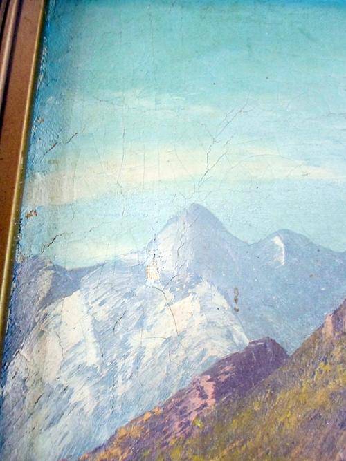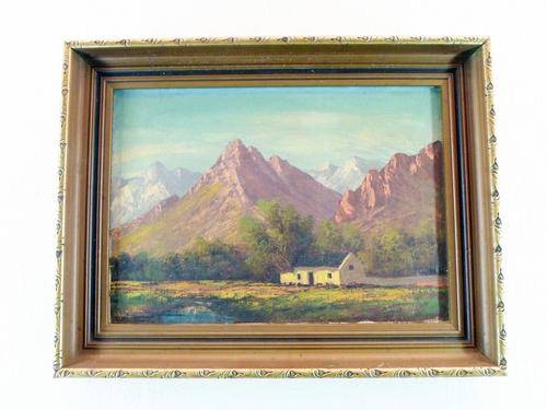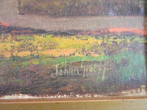 A stunning painting!! The colors and composition is truly magnificent! Painted on canvas and is very old. Their are some spider cracks as per the photo. Price reflects the condition. This beauty measures 34cm x 24cm and the frame measures 45cm x 35cm. Own a piece of treasured art, bid now!!