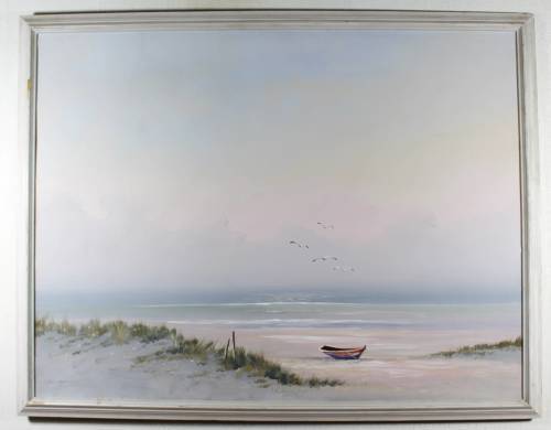 An absolutely stunning piece of artwork from a super talented artist. This seascape scene is superbly executed. The painting measures a large 94cm x 71cm and the frame measures 102cm x 79cm. Own a piece of his magic, bid now!!