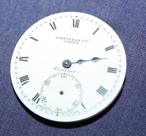 John Elkan LTD London, Colonial Pocket watch, not working. only has one hand. marked on the inside Gauranteed J Boss 20 years, 8153264, Inside the watch swiss made 15 jewels. Postage R30.00