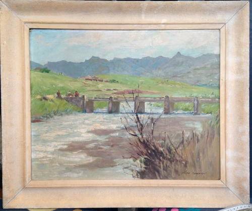John FERGUSON (XX-XXI) oil on board bridge over river original painting listed south african artist