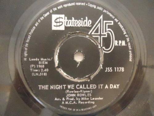 ON OFFER IS THIS JOHN ROWLES SEVEN SINGLE "HUSH...NOT A WORD TO MARY B/W THE NIGHT WE CALLED IT A DAY" - 1968 STATESIDE 45 RPM SEVEN SINGLE AND SUPPLIED IN A STATESIDE SLEEVE