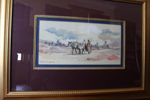 Beautiful watercolour painting by Johnnie De Kock. Donkey cart in farm scene. Signed. We have added a small biography of the artist at the bottom of the page for anyone interested.