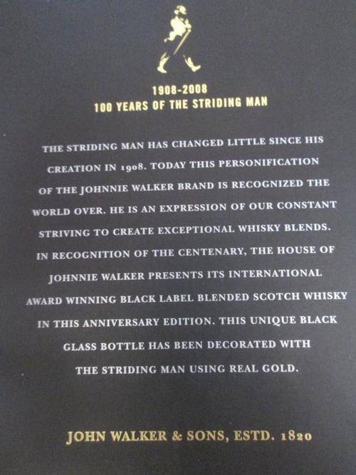 Collector’s item: A special bottling in 2009 of 12 year old Johnnie Walker black label whisky, released and blended to celebrate the centenary of the Symbolic walking man.