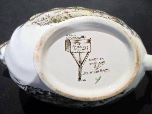 A magnificent gravy boat! These hand painted Johnson Brothers pieces are simply outstanding with an immense amount of detail and rich colors! This piece comes from "The Friendly Village" line and the series is called "Apple Orchid" The gravy boat measures 20.5cm in length. This piece is in superb condition and is offered at a giveaway price, act fast and bid now!!