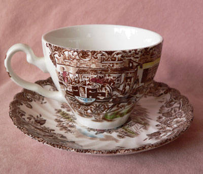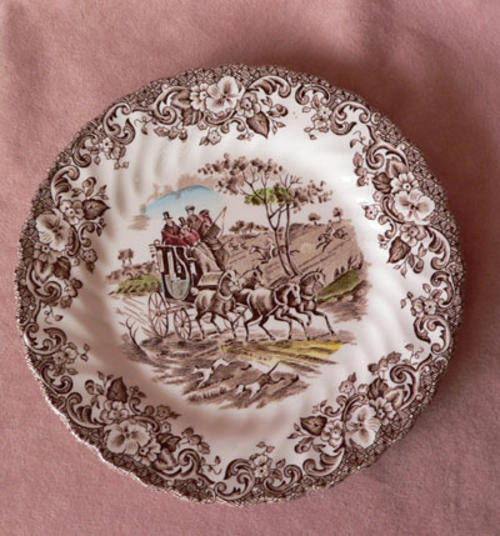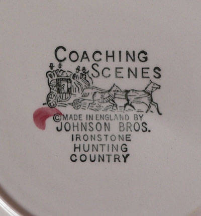 Underneath: Coaching Scenes, Made in England by Johnson Bros. Ironstone Hunting Country.