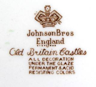 A Johnson plate in the Old Britain Castles range. This popular series was issued in various colours (blue being the most commonly seen), and features a different castle on each piece. This plate is the dinner size and shows Blarney Castle in 1792.