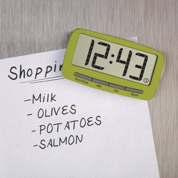 Large, easy-to-read LCD display and a loud beeping alarm.