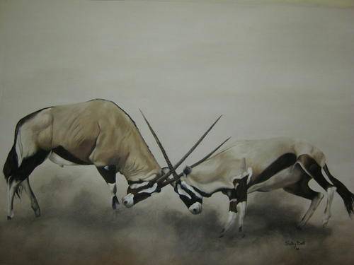JOSTING GEMS BOK  ORIGINAL OIL ON CANVAS