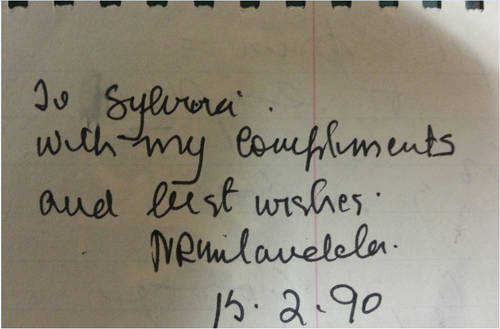 IT CONTAINS TWO SIGNATURES OF THE LATE NELSON MANDELA AS WELL AS A PERSONALISED NOTE TO SYLVIA ALSO A MESSAGE TO THE SWEDISH PEOPLE.