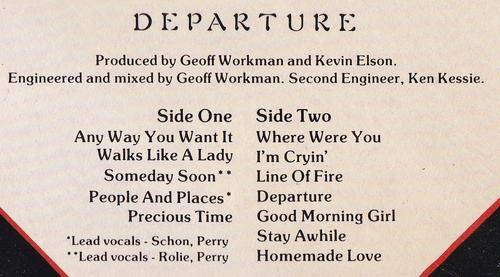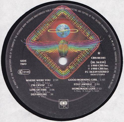 1980 Netherlands CBS pressing, release number CBS 84101, of album by JOURNEY: Departure. The track details are as shown on the images provided. The record has a number of ineffective sleeve-scratches, otherwise in a very good condition. The cover, which includes a pictorial details inner-sleeve, has scuffed corners and edges, a number of edge crinkles, otherwise still in a very good shape. |