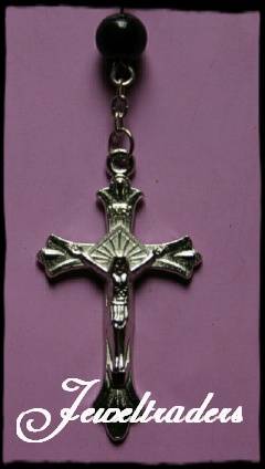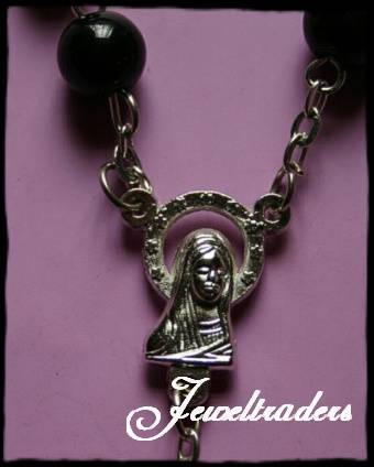 JT - Beautiful Pearlescent Stone Black Rosary Necklace