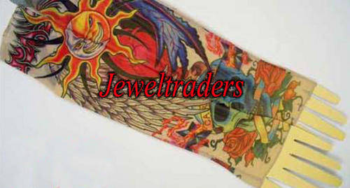 Each pack comes with 2 sleeves made from a stocking type material and printed with very realistic looking tattoos. Great for a laugh, clubbing or fancy dress. The sleeves are reusable.