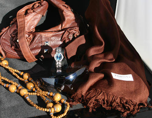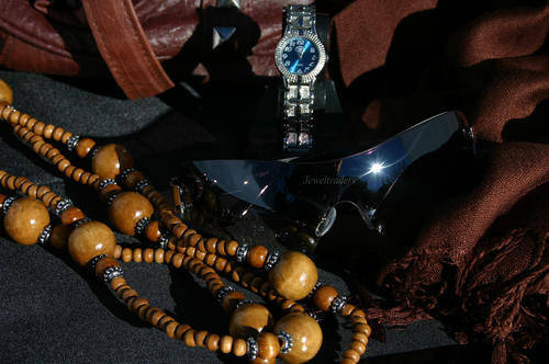 Large Cream Handbag, Watch, 2 Pearly Necklaces,
