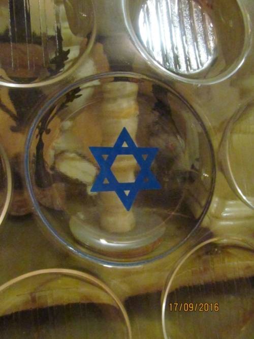 JUDAICA - Transparent SEDER DISH/TRAY with Blue Star Of David in the Center Portion