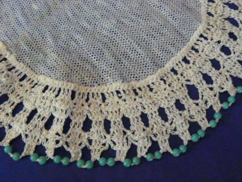 JUG COVER NET AND VINTAGE COTTON WITH GREEN BEADS 29 CM PRETTY
