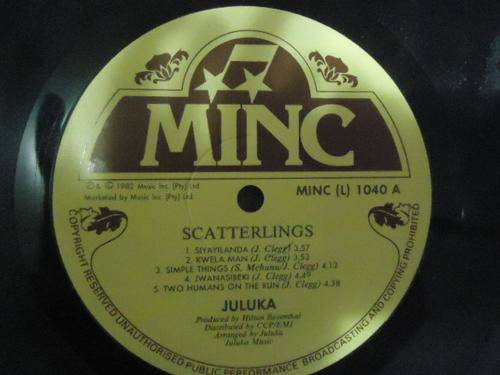 ON OFFER IS JULUKA "SCATTERLINGS" 1982 MINC STEREO LP SUPPLIED WITH THE ORIGINAL INNER SLEEVE IN EXCELLENT COND