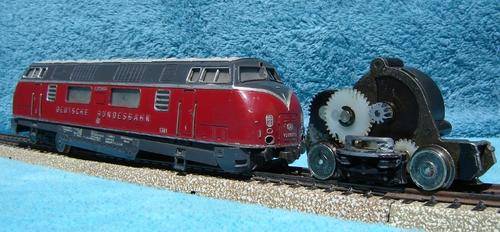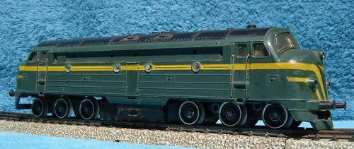 Marklin green all metal construction diesel locomotive body, chassis and wheels.