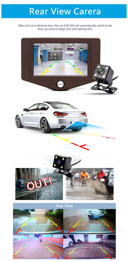 display will let you have clear view from front and back-up camera . When the car in Reversing Gear, this car dvr will automatically