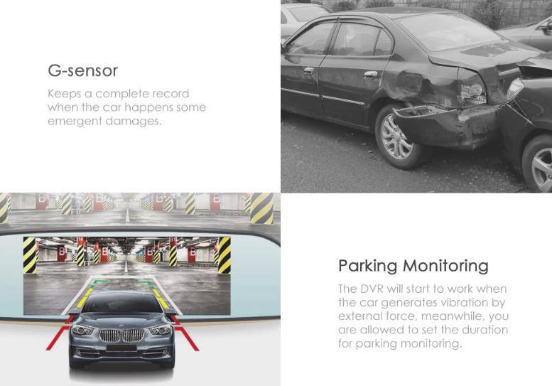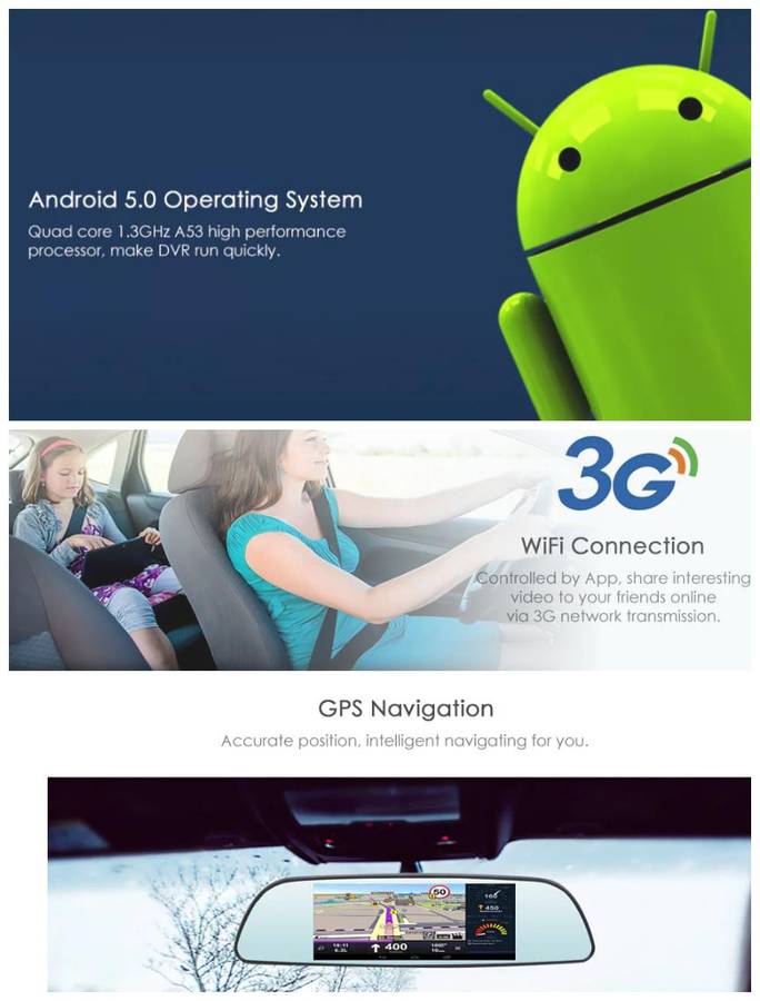 | Functions | WIFI: Yes WiFi Function: Image Transmission,Remote Control,Settings,Sync and Sharing Albums WiFi Network Frequency: 2.4GHz WiFi Distance : 15m Waterproof: No Waterproof Rating : 0 Loop-cycle Recording : Yes Loop-cycle Recording Time: 1min,2min,3min Motion Detection: Yes Motion Detection Distance: 2.5m Night vision : Yes Night Vision Distance: 8 - 10m GPS: Yes G-sensor: Yes WDR: Yes HDR: Yes Auto-Power On : Yes Delay Shutdown : Yes Time Stamp: Yes Interface Type: AV-Out,GPS Antenna Port,Mini USB,SIM card slot,TF Card Slot Anti-shake: Yes Parking Monitoring: Yes |