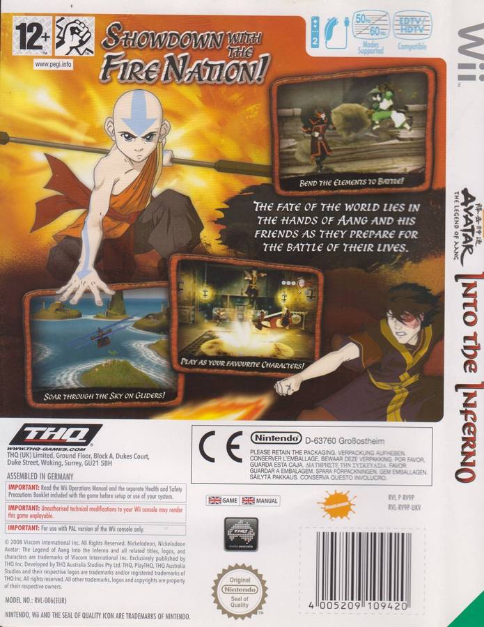 Avatar - The Legend Of Aang : Into The Inferno (Wii) [NO manual]