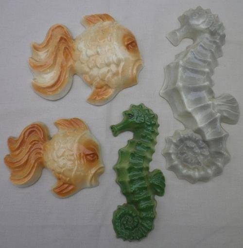 VERY CUTE THESE 4 SEA-THEMED CERAMIC WALL ORNAMENTS-TWO 2 SEAHORSES & TWO FISH