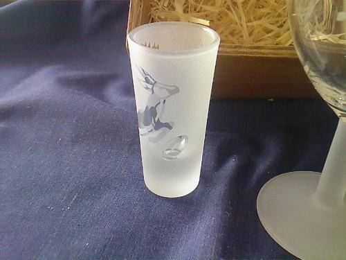 And then for you and your friend, two “Springbokkie” glasses measuring 7.5cm in height.