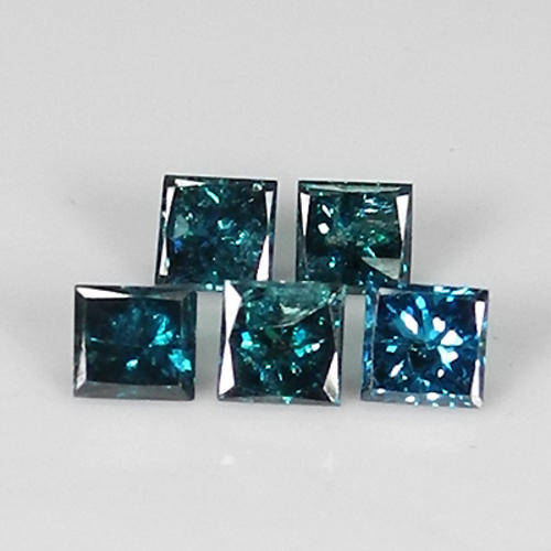 5 piece MATCHING SET OF PRINCESS Cut SI2 -I blue diamonds
