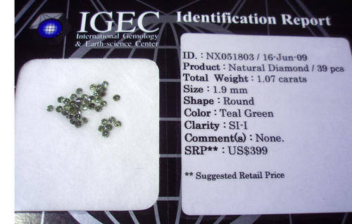 1.9mm Brilliant cut Teal Green Diamonds - MUCH better than the photo's!! They are real natural diamonds and have not been treated in any way.