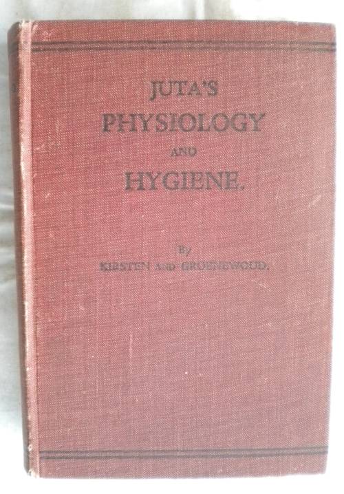 Juta's physiology and hygiene by L Kirsten and PJD Groenewoud. Date of 1934 written in in pencil by previous owner. In fair condition with pencil notes in book.