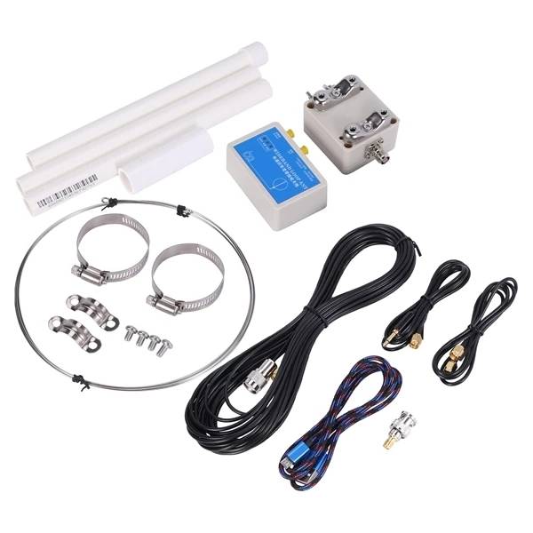 Package includes: 1 x The K-180WLA antenna includes a ring oscillator (304 stainless steel) 1 x RF.BOX preamplifier box, 1 x P.BOX feed box, 2 x P.BOX fixing clips and screws (304 stainless steel), 1 x double SMA male adapter cable (one meter in length), 1 x SMA male to 3.5 plug adapter cable (1 meter in length), 1 x Micro USB 2A charging cable (one meter length), 1 x TNC male and SMA male 50-1.5 feeders (10 meters in length), 2 x antenna mounting and fixing hoop (304 stainless steel). 1 x 3 PVC mounting brackets, 2 butt-throughs and 1 tube cap