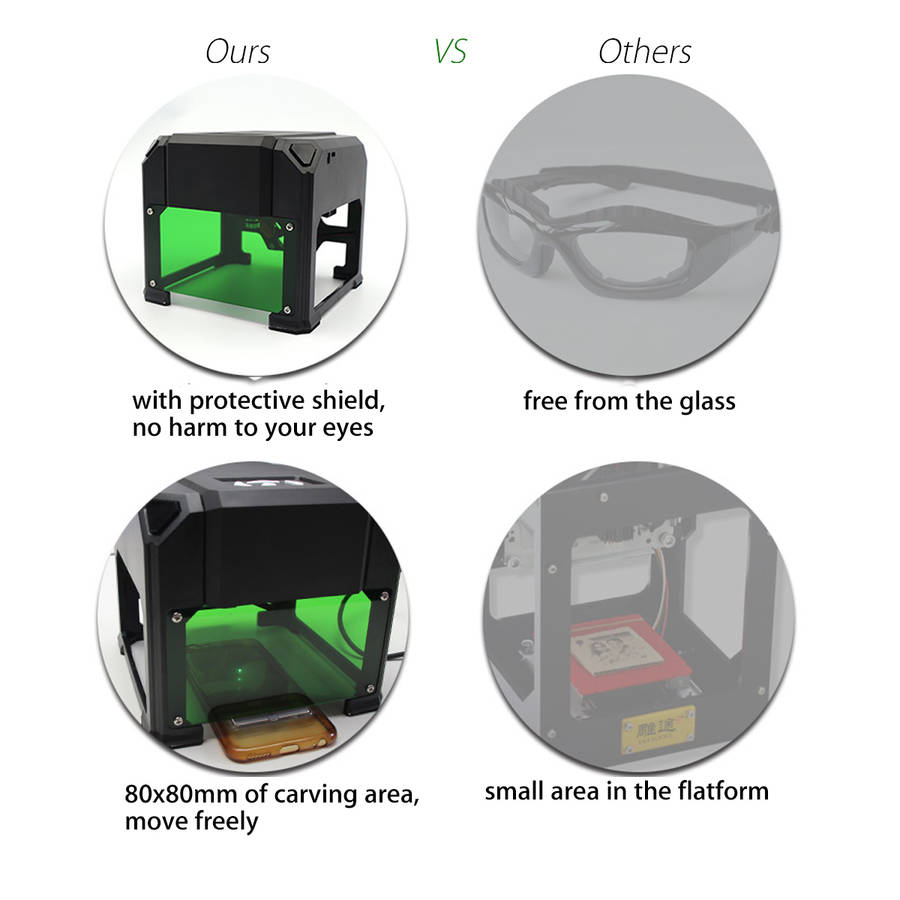 1. The product is a laser carving machine for home use, a tool machine, can not be compared with laser carving machine for industrial use.
